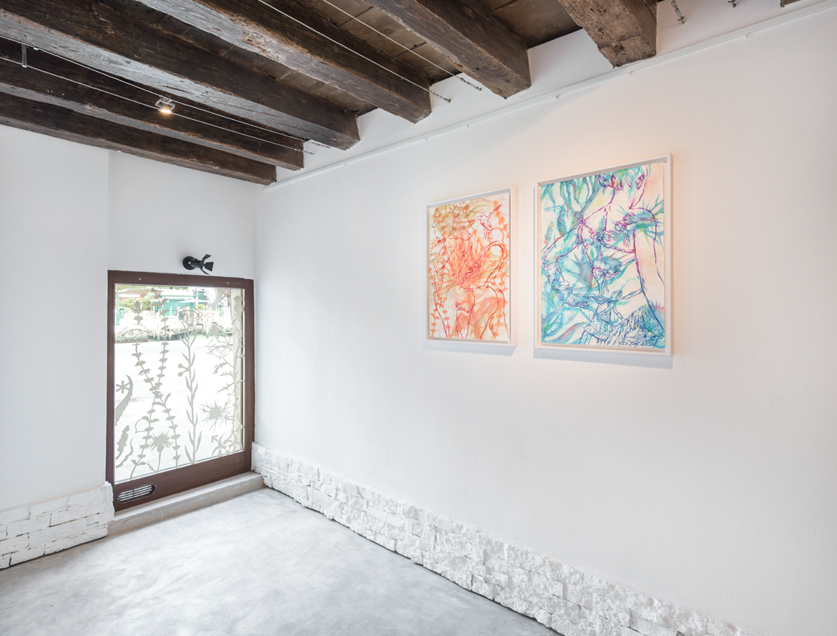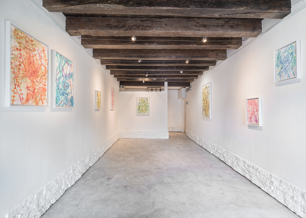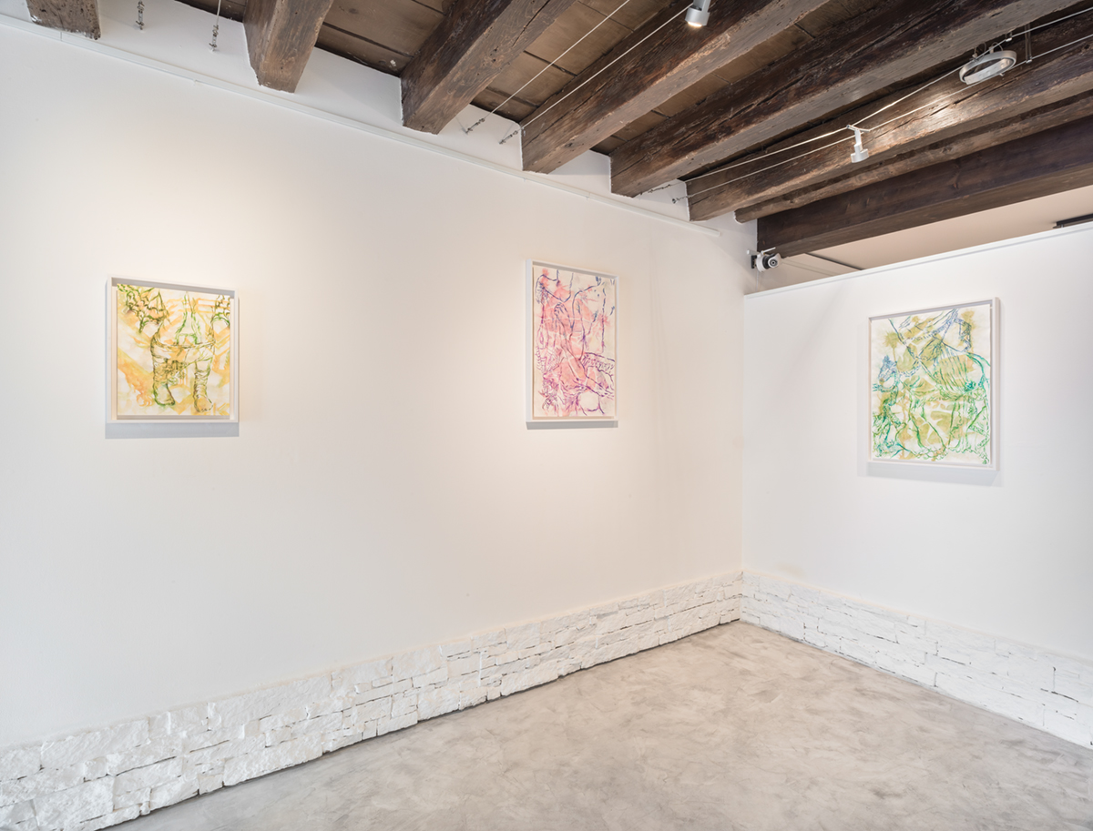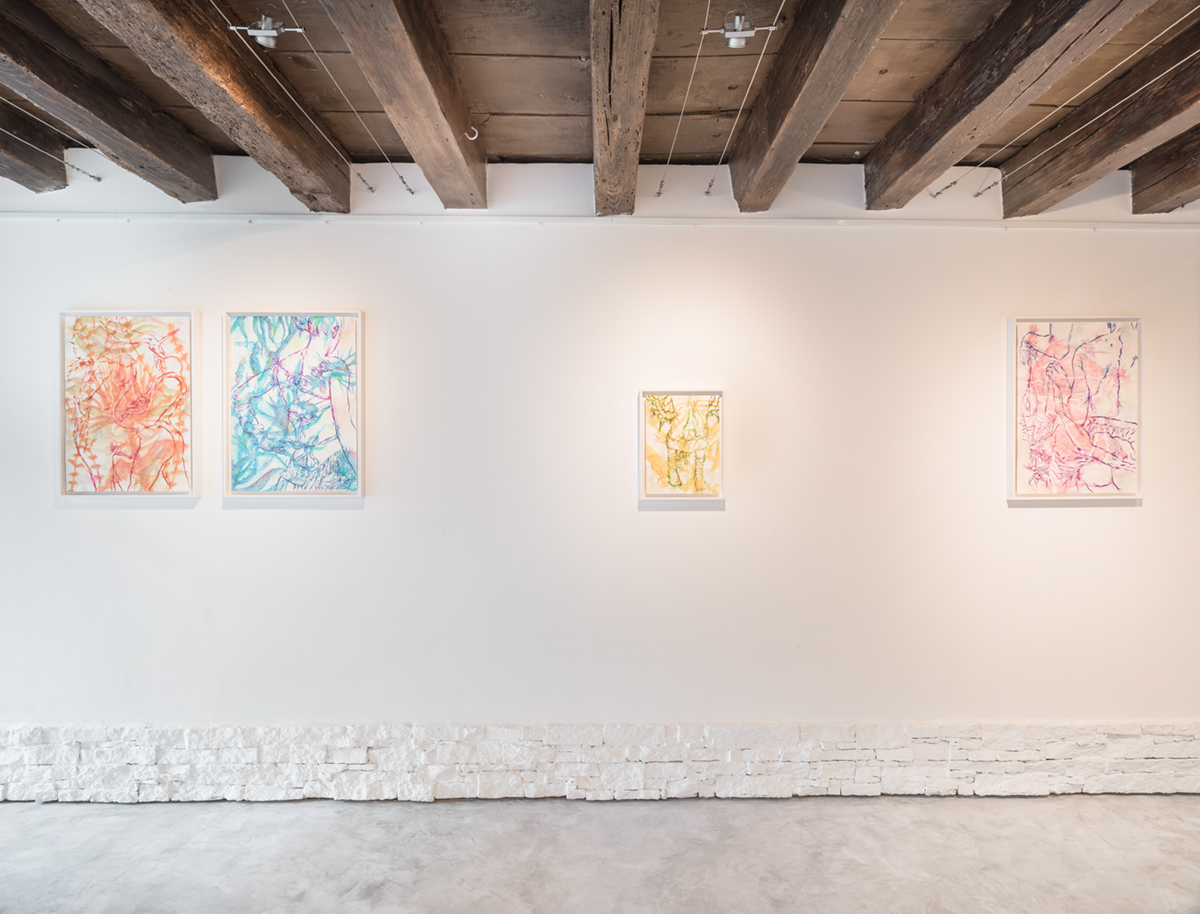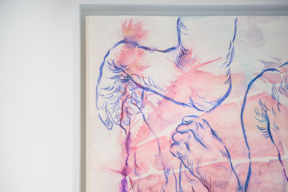 On the occasion of his solo exhibition, the artist presents a corpus of new works, eight watercolours to be exact and a site-specific intervention applied to the window of the space.