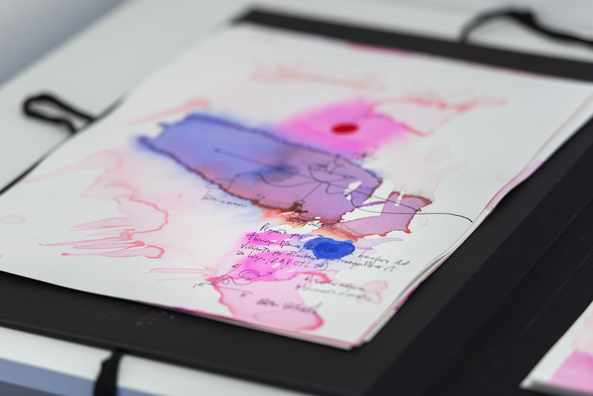 One possible meaning is to restore, through interaction with a work, some form of knowledge. The knowledge to which the R.B.V.O.T.L. seem to bring us closer is that of the other, of the relationship with the other. It is a momentary relationship, all carried out in a present time – one does not speak, one does not tell each other anything, one can coordinate one’s breathing even without knowing any sensible data about the other. Breathing together is an attempt to slow down a moment in which to attempt an impossible encounter. “The other is the agreement with the whole, it is through the other that we perceive the present”, writes Vettorello, echoing Rimbaud’s “Je est un autre”, taken up by Lacan to affirm how the origin of identity is always outside of us. In the moment of agreement with Tuning space, when the breath is detached from us, space is also affected, it “feels better”. A complex, machinic, apparently cold device used to create an atmosphere, an emotional and environmental dimension, the Stimmung, understood as affective tonality and openness to the world. Far from cathedratic stances, Vettorello’s work maintains a playful, visionary tone, the same as that found in his design drawings, made up of imaginative geometric lines and chromatic explosions, accompanied by equally anti-technical instructions such as: “when time is running out the whole world will be less happy / synchrony and intent will relieve him from his torment / The two people with their voices / will distract him from his cross / only company / he wants our friend the round sky / loneliness and little harmony will drive him to madness”.