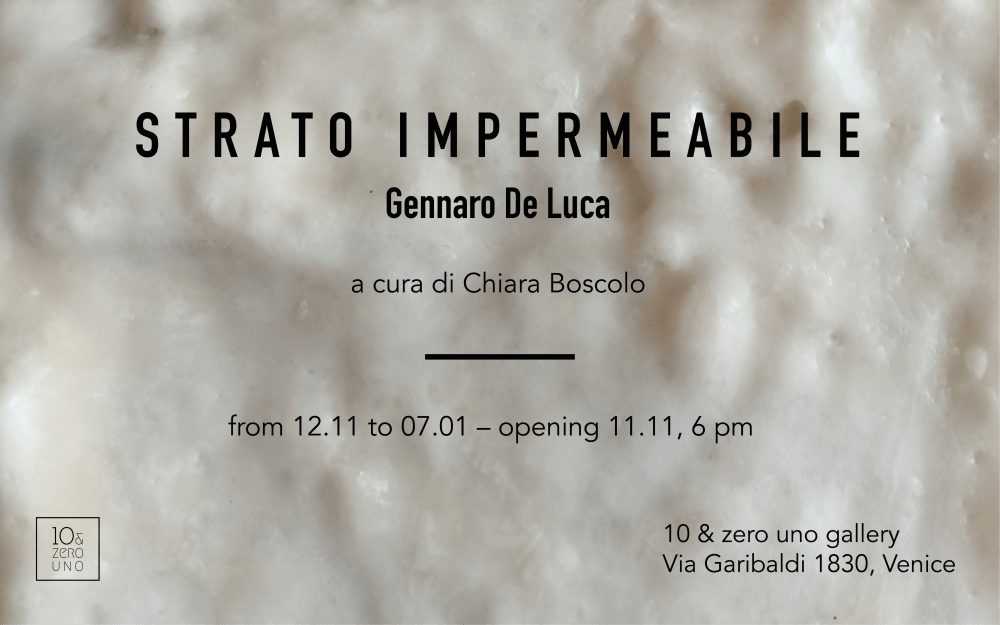 10 & zero uno is pleased to present the first solo exhibition of the young artist Gennaro De Luca (Cassino, 2001) that will take place in its space in Via Garibaldi 1830, close to the Gardens of the Venice Biennale, from November 12th, 2023 to January 7th, 2024, opening Saturday, November 11, at 6 PM.