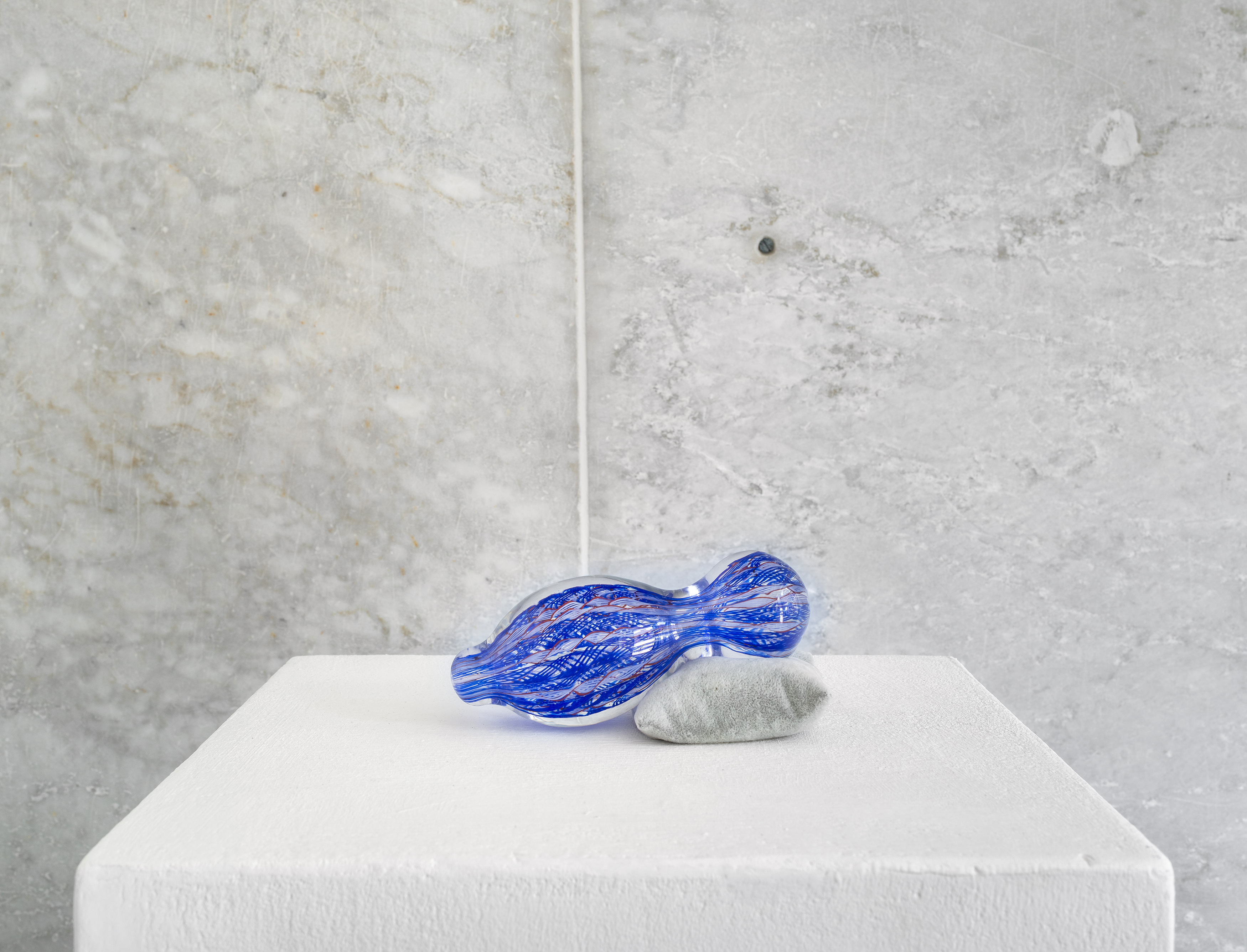 For this exhibition, Baseera is showing a selection of their most recent fine oil paintings on panel, depicting vases, pearls, and improbable skies. Painted in 2024, all of them, from The Safety Game / Bronze Bead Weight (Green) to The Safety Game / Bronze Balustrade Wight with Loose Rings (Peaches), can be considered as multifunctional “gravitational environmental games” that speak of the force of gravity in any form enunciated by the human hand that operates its gesture within a thermodynamic and self-critical spatial context. From this we might infer an ironic rhetoric about the polygamous individuation of the sexual attraction drive, as is evident in The Safety Game / Stainless Stell Safety Plug (Ruby Reds), with which the corresponding Murano glass sculpture, produced by the hands of master glassmaker Marco Giuman, is associated. Glass, in Baseera’s investigative intentions, becomes the medium-optic for a macro-view on the history of the export of beauty and desire, as it happened in ancient Venice, but in this context it takes on the significance of import/export in the trafficking of exploited prostitutes. All of Baseera’s subjects are “seductive” because the materials themselves are expressions and determinations of a body politic that beguiles and fascinates its user. Oil takes on the meanings of power and geopolitics, plastic symbolizes the refinery and pollution, while textiles are transformed into an anonymous workplace: always open concepts that denounce the gravitational force of these dangerous games”.