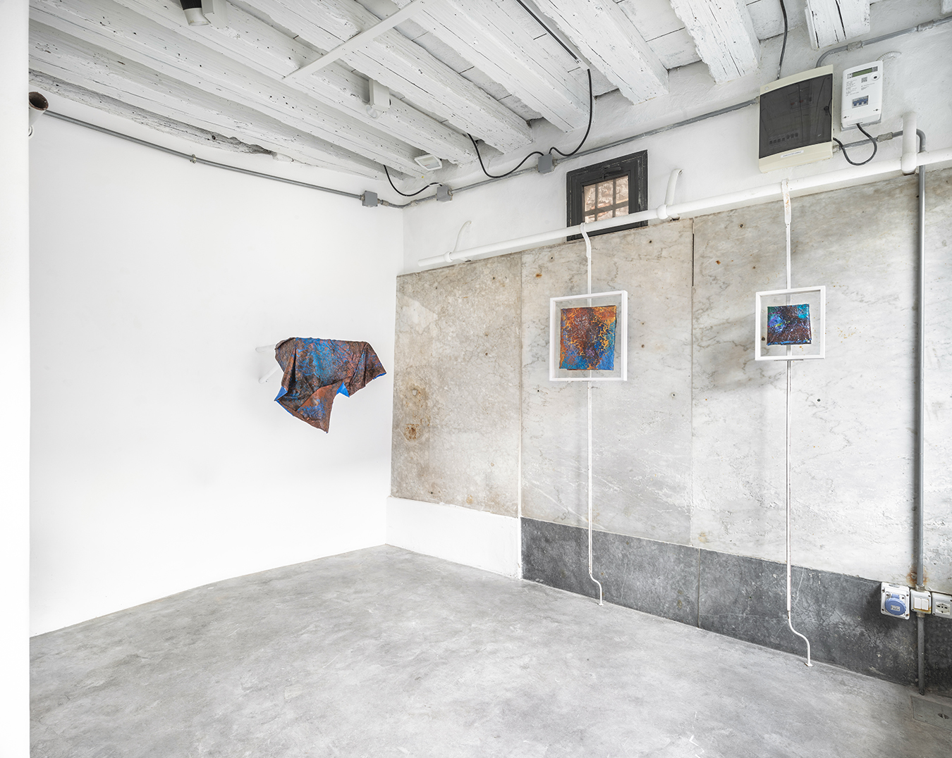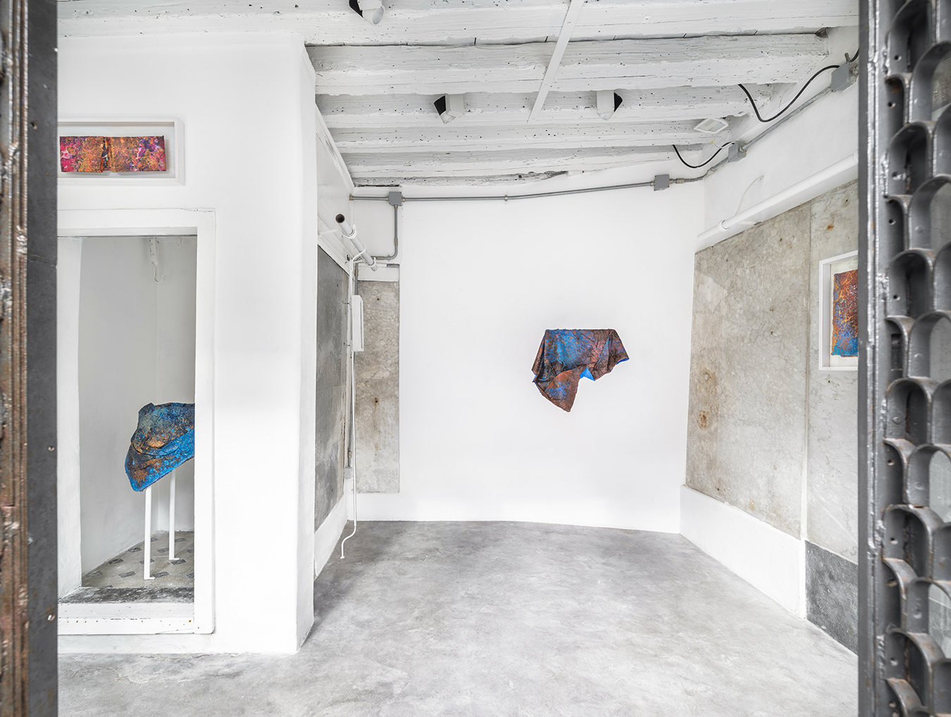 The ineffable borderline between painting and sculpture, the theme of drapery declined in a contemporary key and the vitality of matter are some of the knots around which the variegated corpus of works that make up Indagine di una piega unfolds. Eva Chiara Trevisan explores the quality of the surface and the possibilities of the fold, modelling a pictorial substance that preserves the sign of completed gestures and activates a haptic perception. The artist lives and works in Venice – the home of tonal painting, where the superimposition of colours and attention to luministic effects produce a plastic illusion – so her orientation towards colour as a means of expression is part of a tradition that characterises the lagoon city in its predilection for an element that is emotionally experienced by the viewer and charged with cultural meanings.