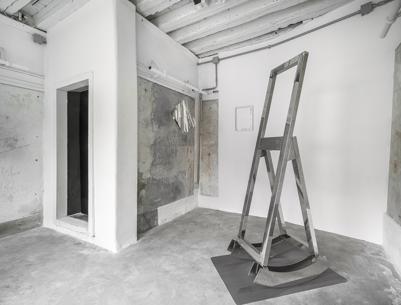 At the heart of the exhibition are emblematic works such as Cicàdidi, a sculptural installation accompanied by a sound piece that diffuses the song of cicadas inside a refrigerated cell, and a new version of Cavalletto a dondolo, a rocking sculpture in mirrored steel that symbolically merges the professions of artist and butcher.