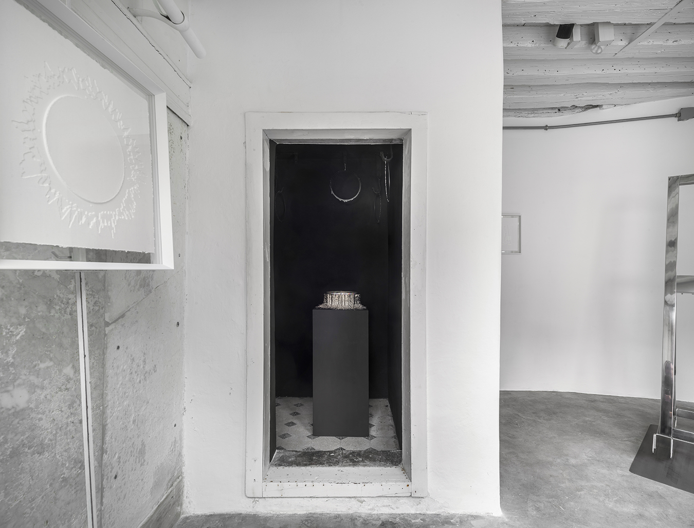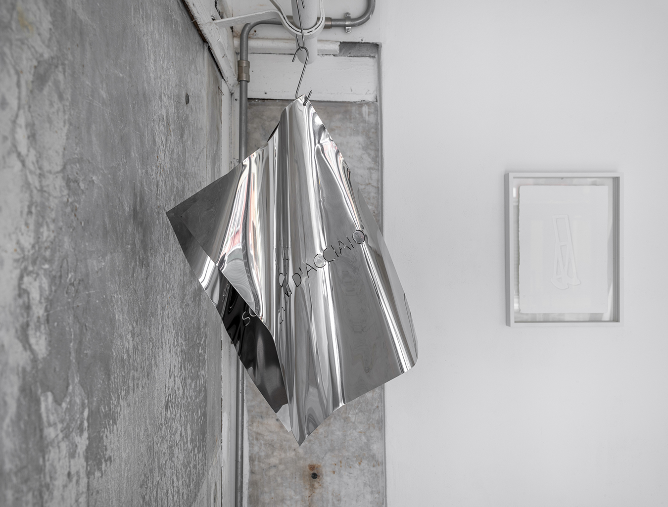 Also on view is Sogni d’acciaio (2025), in which a childhood memory – the delicate silver sheet once used to wrap meat – becomes an engraved plate, transformed into a universal symbol of the poetic force of art.
